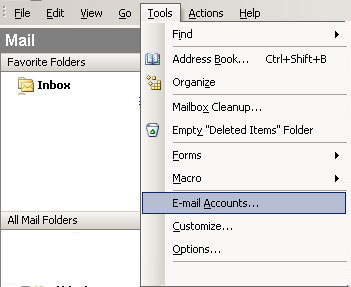 Select the "Tools" pulldown menu and select "Email Accounts."